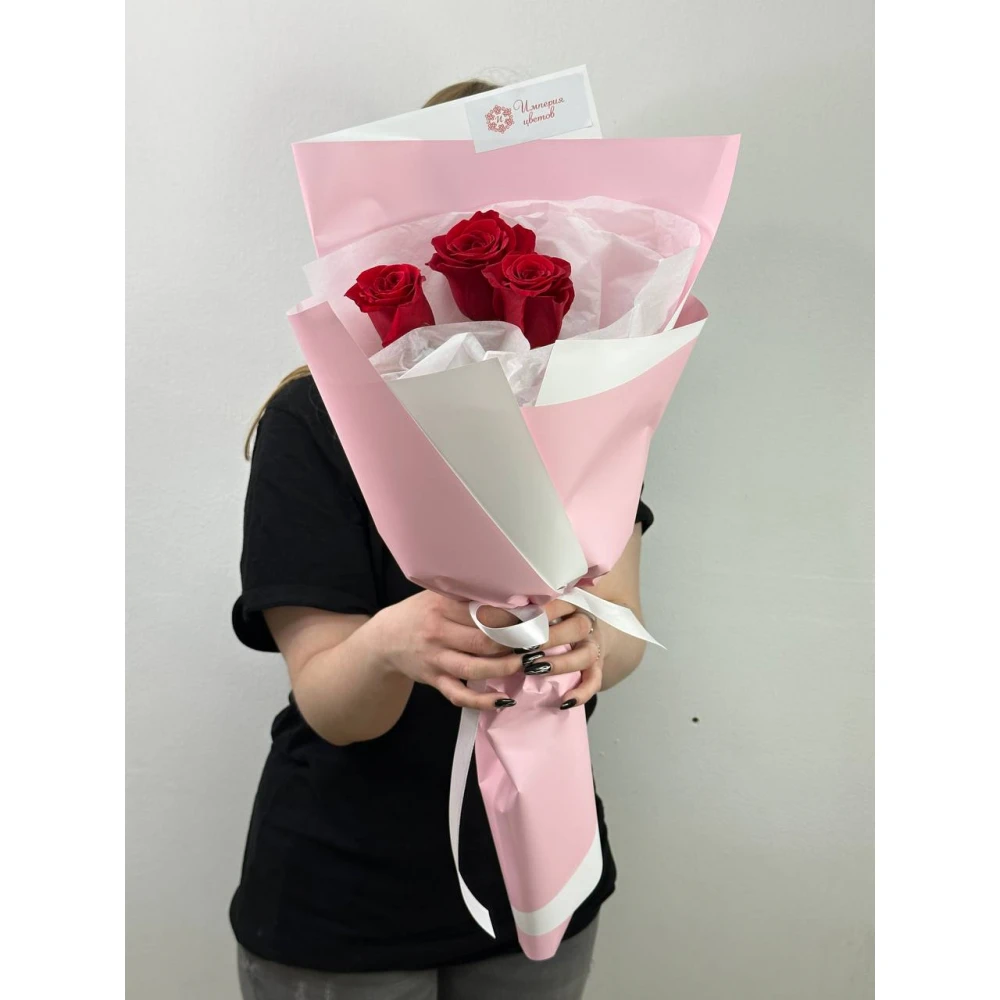 - Страсть и романтика: 3 красные розы формируют насыщенный и выразительный букет, который идеально передает ваши чувства любви и страсти.
